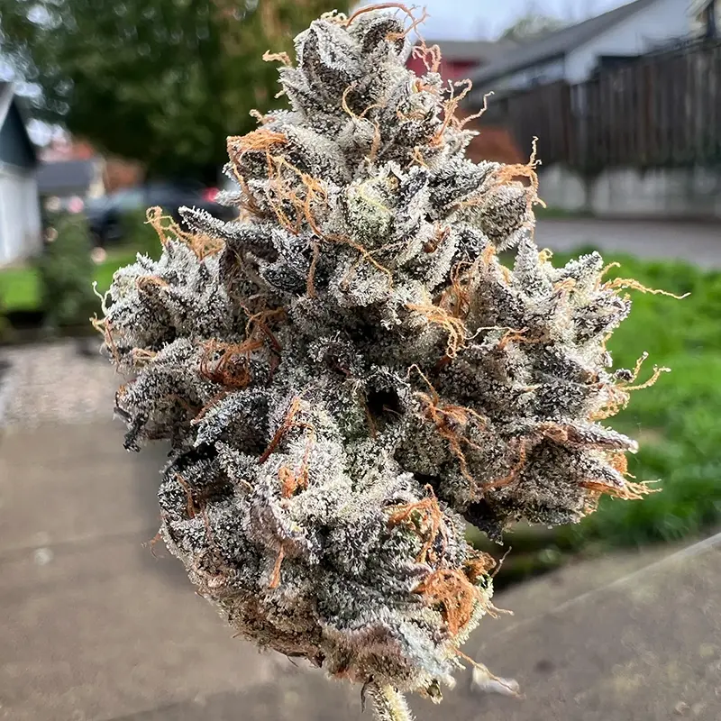 This is the official cut of the infamous “stolen” Toad Venom! (Animal Face x Sin Mintz). When you first smell the fresh flower, there’s an element of that doughy, minty aroma – but as the curing process really hits the end zone, what dominates is a smell exactly like those peach rings candies you buy at a gas station. You almost need to stare at the jar a couple times to make sure you’re reading the genetics correctly. Taking a hit, this strain delivers that full-bodied, gassy, doughy smoke that seems to coat your mouth in cotton.